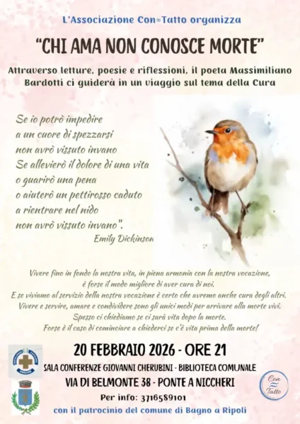 Attraverso letture, poesie e riflessioni Il poeta Massimiliano Bardotti guiderà i presenti in un viaggio sul tema della cura.
